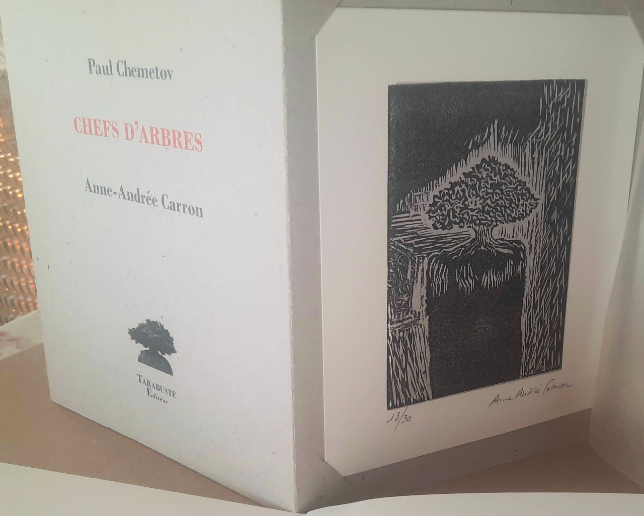 2010, 44 p. / ISBN 978-2-84587-209-7 / Les photographies de sculptures de terre de A.-A. Carron représentant de petits arbres sur socles sont accompagnées d'un texte de présentation par l'architecte P. Chemetov qui y énonce également ses considérations personnelles sur la sculpture et l'architecture.